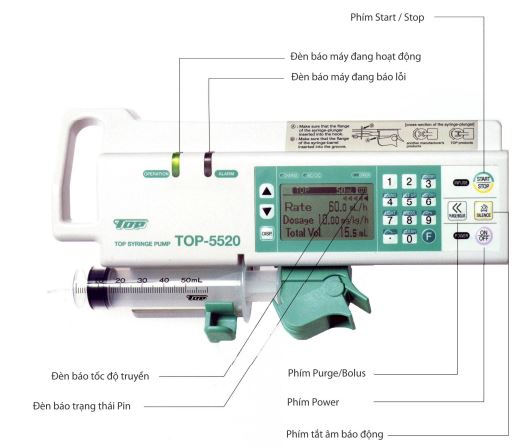 Được cung cấp một phím nhấn cho kiểm tra bằng đèn chỉ báo rằng các cài đặt cho ống tiêm được sử dụng là chính xác.